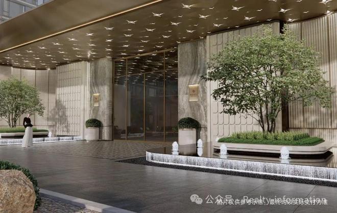超百米的城市界面,酒店式落客归家大堂,定制白色肌理感奢石景墙展,打造完整的归家体验。